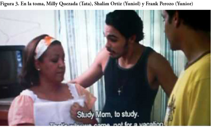 La sensibilidad y grandeza de espíritu de Yunior se observa cuando decide irse a vivir al barrio (figura 3). Su objetivo era demostrarle a su madre que él podía vivir sin riquezas, pero con amor, como lo hacía Yuniol. Luego de andar en un carro deportivo de último modelo, ahora tenía que transportarse en autobuses del transporte público y en motocicletas; de solicitar a la ducha agua tibia, pasó a bañarse en el patio de la casa de Tata, echándose agua fría con un cántaro de plástico. También fue objeto de una golpiza por parte de un grupo de delincuentes barriales.