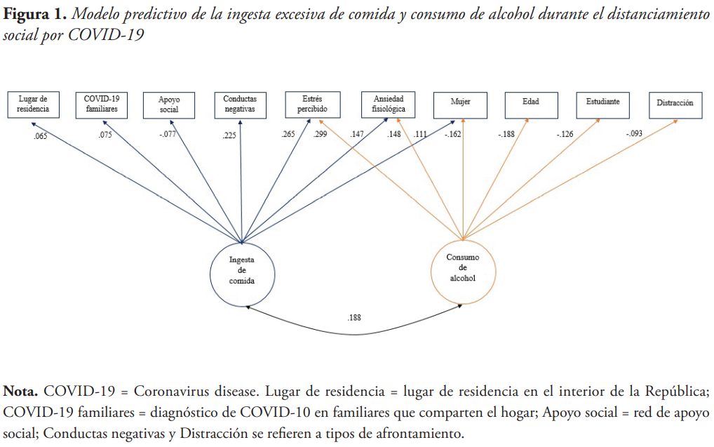 Finalmente, la figura 1 presenta, de manera gráfica, el modelo predictivo para los excesos conductuales en comer y beber alcohol durante el distanciamiento físico por COVID-19.