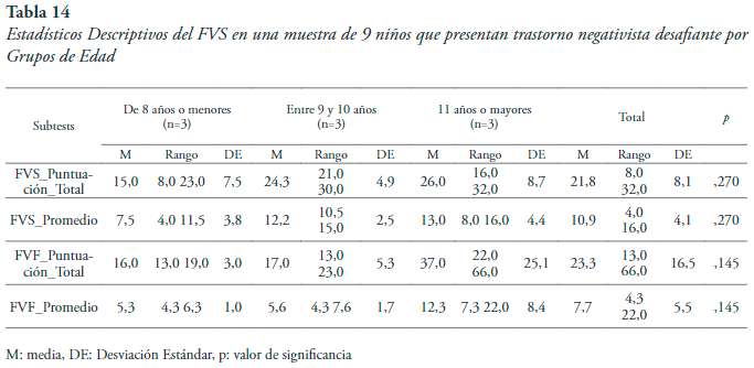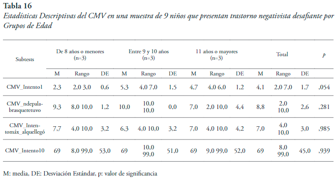 De acuerdo a la variable edad también se observa una variabilidad alta en concordancia con la hipótesis de desarrollo diferencial según la edad (tabla 16).