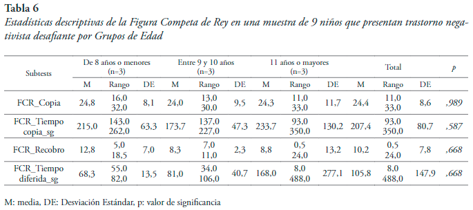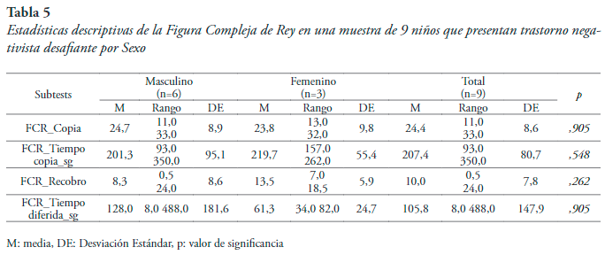 Abstract: The present study was aimed to determine the executive functioning profile of nine children with the oppositional defiant disorder through neuropsychological tests to evaluate frontal functions. The scope of the research was descriptive-observational, and its design was non-experimental. The neuropsychological evaluations used quantitative instruments, and the variables were considered through standardized, and their scores were numerical. As a result, low performance is highlighted in most of the tests that assess these dorsal functions in the sample evaluated. The results obtained contribute to a better understanding of the diagnosis of the oppositional defiant disorder, in addition to implementing effective strategies in the order of intervention, especially due to the prevalence of this disorder is 6.43% in the Colombian population.