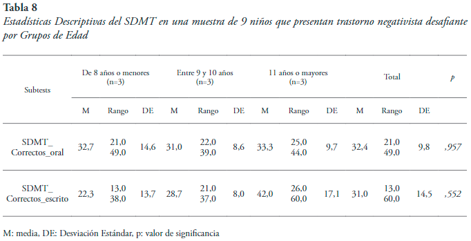 Se evidencia que las funciones cognitivas examinadas pueden desarrollarse de manera distinta en sujetos con TND de diferente edad.