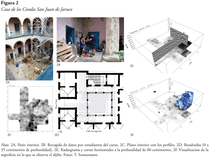 Resumen: Bajo el pavimento de La Habana Vieja se esconden 500 años de historia estructural, que incluyen los dispositivos de almacenamiento y distribución de agua relacionados con la primera gestión colonial del preciado líquido en la ciudad histórica. La posibilidad de revelar alguna información de forma no destructiva fue el objetivo del curso “Monitoring Heritage 2019”, dedicado al estudio del patrimonio construido y organizado por la Universidad de Bamberg (República de Alemania), el Colegio Universitario San Gerónimo de la Habana, y la Oficina del Historiador de la ciudad de La Habana. En el curso, que contó con la participación de profesionales cubanos de historia, arqueología, arquitectura, ingeniería civil y geofísica, se investigó el subsuelo de tres edificios ubicados en el Centro Histórico de La Habana Vieja utilizando el método del georradar. Los trabajos se enfocaron en la identificación de cimentaciones, estructuras e instalaciones antiguas o contemporáneas. Los resultados obtenidos muestran una vista de la situación actual de los patios, en particular, la presencia de aljibes o cisternas históricas, o la existencia de estructuras anteriores en uno de los casos. Además, demuestran la factibilidad de utilizar este método en otros espacios del Caribe con propósitos similares en los procesos de identificación, investigación, y conservación del patrimonio cultural urbano.