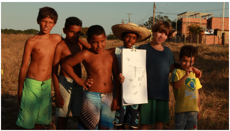 Durante o filme Um dia novinho em folha , é possível vê-lo em atuação, chamando as crianças do bairro para a participação em mais um trabalho. Durante as filmagens, ele convida algumas crianças (Figura 4) que brincavam em frente às suas casas para fazer um filme, e o interesse é imediato. Neste ponto, a câmera do CUCA observa a forma espontânea como a história se desenrola, e, para o espectador, a "ficção" se confunde com o "real".