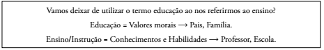 1. Em prol da separação entre espaço público e privado, transferindo a educação para o espaço privado da família, a quem caberia toda a formação moral e ética das crianças. O espaço público da escola é destinado ao aprendizado de conteúdos (Figura 1).
