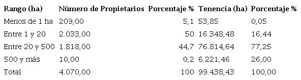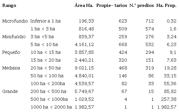 En María La Baja las condiciones de concentración de las tierras en pocas manos no son muy diferentes, como se puede evidenciar en la siguiente tabla (Tabla 3).