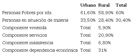 La concentración de la tierra en María La Baja ha derivado en tasas de pobreza que superan el 61 % en el espacio urbano y de 58 % en el espacio rural, con un total del 60 % de la población de María La Baja en situación de pobreza. Es decir, que de cada diez personas, seis se encuentran en situación de pobreza en este municipio. Otro indicador diciente de la economía excluyente y opresora de María La Baja es el indicador de miseria de la población; se encuentra en lo urbano en 33,5 % y en lo rural e 28,4 %, con un total de 30,4 %, uno de los índices más altos de todo el país. De lo anterior se desprende que de cada diez personas tres en María La Baja se encuentran en condición de miseria, como se puede evidenciar en la Tabla 4.