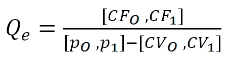 Los costos fijos se dividen entre la producción, dando costos fijos unitarios, los cuales se suman a los costos variables unitarios, este resultado es [$25,24, $28,19], a estos valores se incrementa el porcentaje obtenido en la información suministrada por los artesanos del calzado, el cual se representa una banda comprendida entre el 20% y 25% de rentabilidad dentro de su sector, entonces el precio de venta se encuentra en el intervalo [$30,29, $35,23]. Para determinar el umbral de equilibrio se aplica la siguiente fórmula: