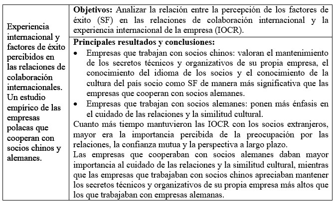 Danik, L., Golebiowski, T. (2014). International experience and perceived success factors in international collaborative relationships. An empirical study of Polish firms cooperating with Chinese and German partners. International Business and Global Economy, (33), 482-494.