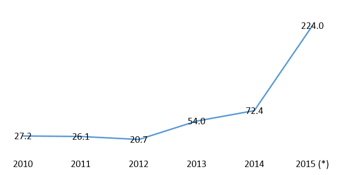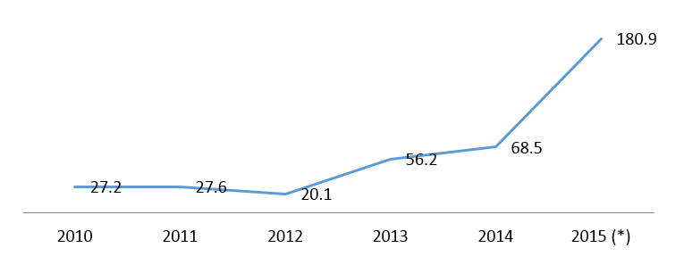 A modo de contrastación con las respuestas de los especialistas, se revisó el panorama económico nacional con respecto a los niveles de inflación, teniendo como base las cifras aportadas el Banco Central de Venezuela (BCV, 2019) y el Instituto Nacional de Estadísticas (INE, 2018). En dichos informes oficiales, las cifras indican que la economía nacional sufrió de graves distorsiones que desembocaron en el nivel de precios durante el periodo 2010-2015, lo que afectó de manera importante el desenvolvimiento del resto de los indicadores monetarios. Tanto así, que la revisión muestra que desde el año 2010 de forma consecutiva el índice de inflación va en tendencia creciente, ubicándose en 27.2 % para ese año; para cerrar en el año 2015 en tres dígitos, en una cifra de 180,9%. Dicha escalada en los precios se presenta de manera anualizada a continuación: