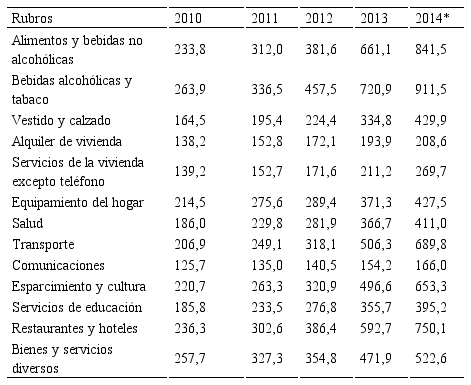 INE (2019).Se aprecia que la mayor incidencia en el nivel de precios se enfoca en bebidas alcohólicas y tabaco, el cual se ve afectado por las restricciones en la adquisición de divisas; además de los impuestos asociados a su consumo. Dichos impuestos sufrieron un incremento en las tasas impositivas durante el año 2014, del 15% al 35% en bebidas alcohólicas y cigarros, lo que se trasfiere directamente en los costos y a su vez en el precio que cancela el consumidor final. Esto comprueba el efecto que tiene el nivel de los precios con el desempeño económico de las ciudades, en particular de Barquisimeto, reconocida por su empuje agroindustrial en la región centro occidental y epicentro empresarial de varias trasnacionales que movilizaban cantidades de bienes, servicios y recursos a la inversión, expansión y sostenimiento de sus unidades productivas, manteniendo la rentabilidad de sus operaciones.