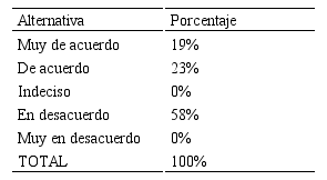 Por su parte, el rubro Servicios de Educación Privada es uno de los factores que se pudiera considerar en el aumento del índice inflacionario. La mayoría de las respuestas (50%) se inclinan a estar en desacuerdo en cuanto a dicha consideración. No obstante existe un 27% quienes optan por responder que están muy de acuerdo y de acuerdo (15%) en la proposición señalada en el estudio. Los encuestados profundizaron en sus respuestas, indicando que el servicio privado de educación universitaria se encuentra monopolizado y, por ende, su oferta de servicios, aunado al costo de los mismos tienden a ser elevados en comparación a otros centros educativos, no cuenta con las regulaciones pertinentes y se caracteriza en captar la población estudiantil flotante de la ciudad, en su mayoría de clase social media, quienes se componen de personas que comparte su tiempo entre el trabajo y los estudios, lo que conlleva a que cada actualización de los costos de matrícula impacten en el ingreso disponible para su manutención diaria.