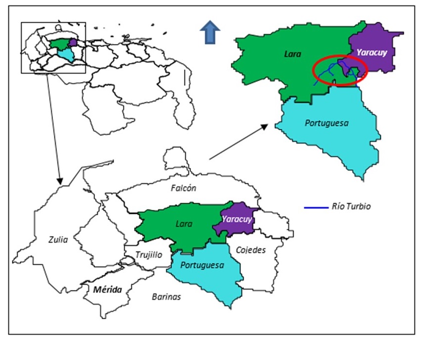 Como objeto de este estudio se escogió el Valle del Turbio, que forma parte de esta diversidad y está compuesto por tres estados Portuguesa, Lara y Yaracuy. Este último se subdivide en tres unidades: el valle de Las Damas, la depresión Turbio-Sarare y la depresión Turbio-Yaracuy (municipio Peña). Motta et al. (2009) menciona que el estado Yaracuy está ubicado al este de la región centro-occidental de Venezuela (estados Falcón, Lara, Portuguesa y Yaracuy). Limita al norte con el estado Falcón, al este con el estado Carabobo, al sur con el estado Cojedes y al oeste con el estado Lara. Su clima se caracteriza, por precipitaciones y temperaturas promedios anuales elevadas. La tipología corresponde con un clima tropical seco que abarca la depresión Turbio-Yaracuy. Posee una ubicación geográfica estratégica, vías de acceso y centros poblados importantes. Andrade (1996) señala que el Valle del Turbio forma parte de un horizonte general básico “Paisaje de planicie” con relieves planos de muy poca pendiente.
