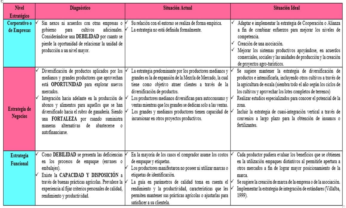 Estrategia de Negocios: los productores se concentran en llevar a cabo sus procesos de siembra. Esto trae como consecuencia que se dediquen solo a procesos netamente operativos.