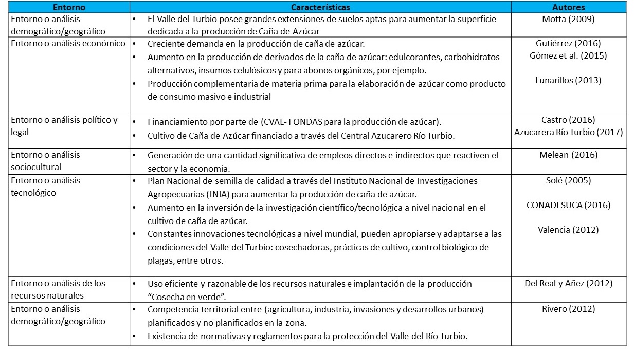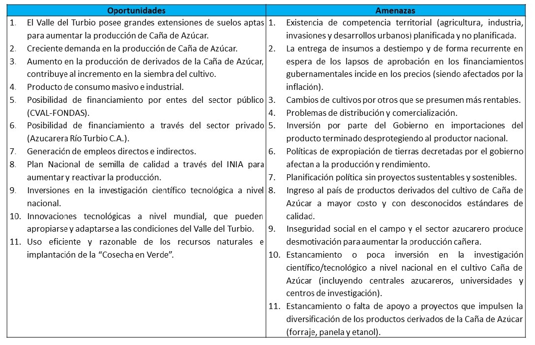 En las Tablas No. 1 y 2, se presenta una caracterización general de las condiciones que enmarcan la producción en el Valle del Turbio en cuanto a oportunidades y amenazas.