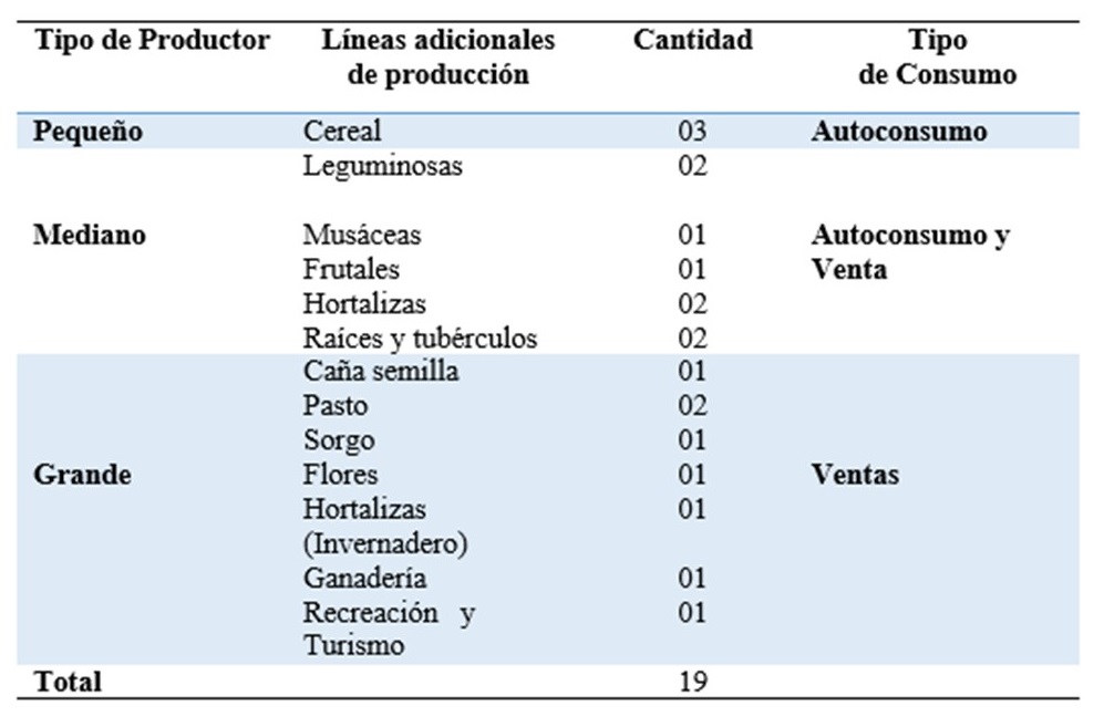 Al consultar sobre la posibilidad de inclusión de otro tipo de actividad a futuro, se observa 5 de los productores indica que ha pensado en incluir otro tipo de actividad económica en su unidad de producción, sin embargo, el resto que son parte de los pequeños productores no desea ingresar en otro tipo de actividad por cuanto necesitan de más capital y extensiones de tierra que no poseen, además de representar una inversión riesgosa. Las opciones en cuanto a actividades adicionales indicadas son: turismo y recreación, diversificación de productos y otros rubros.