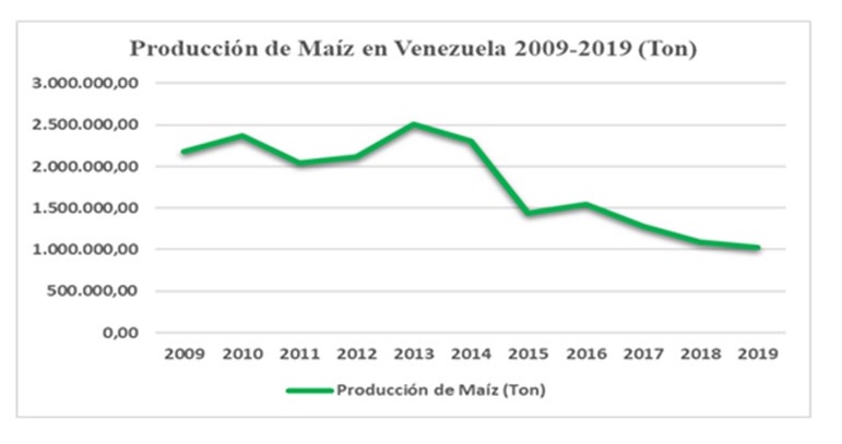 De acuerdo a las informaciones oficiales se pudo observar que, a partir del año 2015, la disponibilidad del rubro maíz no cubre la demanda, por tal motivo es preocupante tal situación en vista que es un rubro estratégico y perteneciente a la cesta básica del venezolano.