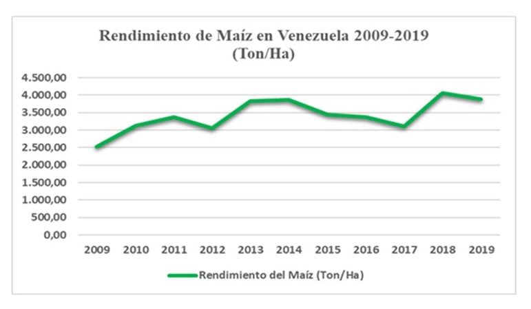 En contexto agrícola venezolano, el maíz es un rubro estratégico y representa un producto básico en la dieta diaria. En cuanto a la producción de este rubro, se puede afirmar que tiene alta rentabilidad y tiene bajo impacto ambiental. Sin embargo, implica incrementar las importaciones de semilla para garantizar los niveles de producción necesarios para abastecer los requerimientos de la población y del consumo animal. Ello incluye también la importación de grano de maíz bruto, de harina de maíz precocida y salvado. Según Segovia y Alfaro (2009: 242):