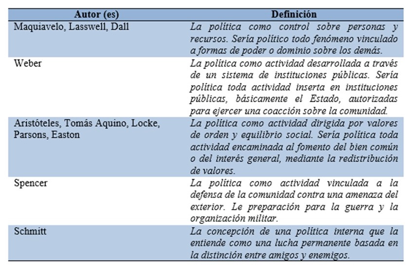 A continuación, se presentan algunas definiciones del concepto de política en la acción gubernamental (ver Cuadro No. 4):