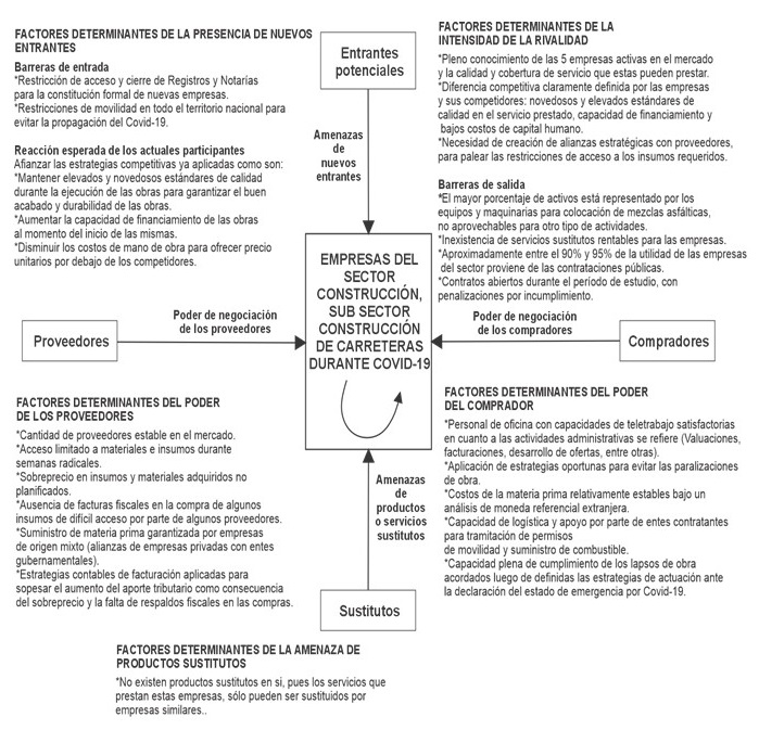 La aplicación del decreto de emergencia y distanciamiento social, definió el principal factor limitante en la creación de nuevas firmas empresariales, constituidas legalmente. Los Registros y Notarías, oficinas que tenían suspendidas sus actividades, no podían dar formalidad a nuevas empresas. Sin embargo, ante la aparición de nuevos competidores, bajo la hipótesis de que existiera una nueva empresa recién constituida justo antes de la declaración de la pandemia y que lograra participar en un proceso de licitación, no bastaría con cumplir las condiciones mínimas de contratación, sino que deberían poseer un perfil competitivo que le garantizara superar las ofertas de su competencia (conocimiento especializado y tecnología, experiencia, la lealtad firme de los clientes, pulmón financiero, entre otros).