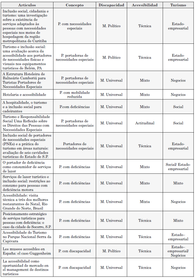 Scientific articles on tourism for persons with disabilities in Ibero‑American journals of tourism. A proposal for categorization