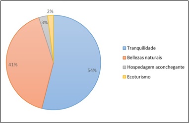 A tranquilidade entra em questão que muitos turistas fogem de seu cotidiano de correria e vão em busca de descanso em um lugar propício e somando com um atrativo a mais de beleza natural, o ambiente tem só a ganhar. Em relação ao menos optado, no caso o ecoturismo, observa-se que para tal prática é necessário primeiramente o bom relacionamento dos itens mais procurado, meio ambiente com convívio estabilizado e tranquilo.