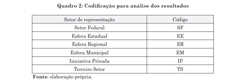 Ademais, o estudo faz uso de pesquisa bibliográfica e são realizadas entrevistas com os membros do conselho estadual com roteiros semiestruturados, que foram gravadas e transcritas com o consentimento e autorização dos participantes e posteriormente foi realizada a análise de conteúdo do tipo análise estruturadora do conteúdo, buscando tipos ou estruturas formais na codificação das respostas (quadro 02).