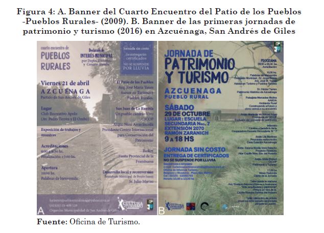 Por último, así como en Exaltación de la Cruz la participación de las comunidades locales cuestionó y desafió los criterios patrimoniales y turísticos implementados por los funcionarios del municipio, permitiendo un cambio en la gestión y valorización de la ruralidad; en San Andrés de Giles el proceso de desarrollo turístico incidió en la apertura de lo que las políticas públicas naciones y provinciales concebían como turismo rural (= estancias). De esta forma, los pueblos, lo comunitario, se incorporaron como puntos clave para el desarrollo de esa modalidad en el país.
