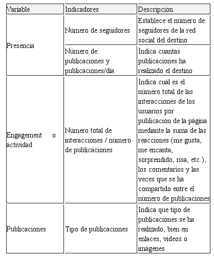 Además, como aportación original al modelo, se ha considerado de interés para analizar la actividad añadir la variable “tipo de publicaciones”, a través de la cual se obtiene información acerca del tipo de publicaciones de las redes sociales de los destinos.