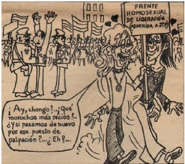 Ante esta hermandad de fuerzas, El Caudillo graficó caricaturescamente a militantes de Montoneros y el ERP en poses afeminadas mientras que otras veces describió a Montoneros como “niñas que gustan de orgías descontroladas”[12] Por. su parte, el sector de la izquierda peronista comenzó a abrirse paso en los actos públicos bajo los cánticos “No somos putos, no somos faloperos. Somos soldados de FAR y Montoneros. No somos putos, no somos faloperos. Somos soldados de Evita y Montoneros” (Simonetto, 2014: 167).