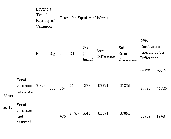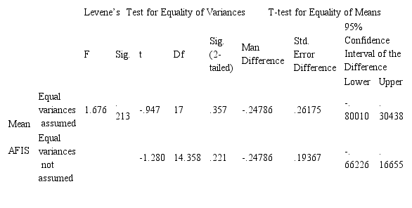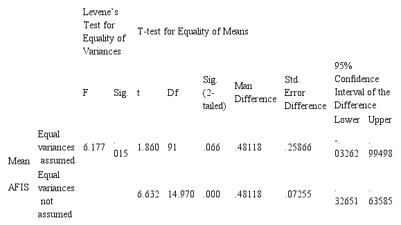 The AFIS has good psychometric properties, adequate internal consistency and temporal stability. The ISR subscale in this research has a slightly lower mean than the one found in first year of college by Tolman (2000), with a mean of 3.0480 compared to that of 3.2910. The OBR has a mean of 2.94, lower that the one of first-year college students of 3.575.