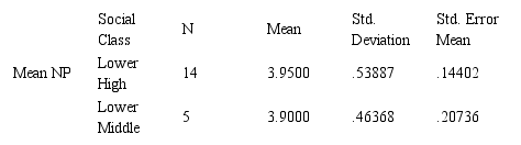 Hypothesis 4 (H4): Social class will influence the acceptance of neoliberal perceptions was also insignificant. A T test was run to analyze the relationship between class and the acceptance of neoliberal perceptions. Just as in all the previous tests regarding social class, the results are insignificant with p=.654 and t=.198 as seen below.