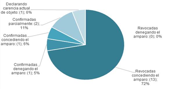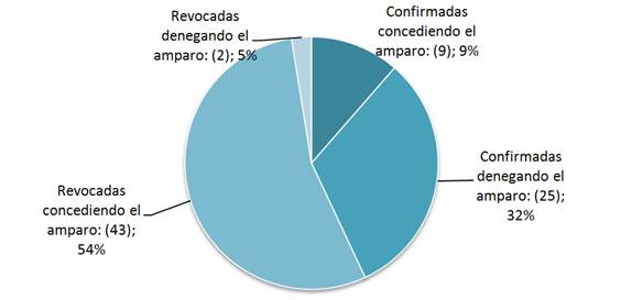 Ahora bien, entre estas estadísticas resalta el hecho de que dentro de las libertades inmunidades, que para el profesor Ferrajoli están integradas, entre otras, por la libertad personal que representa un nexo con el cuerpo, es decir, la inmunidad del cuerpo respecto a privaciones, restricciones o prácticas heterónomas,25 encontré que la Corte durante el periodo de gobiernos postconstitucionales revocó para conceder el amparo el 40% de fallos expedidos en instancias anteriores, y durante el periodo de la PSD siguió con la misma tendencia, aunque con un aumento significativo, ya que durante este periodo revocó un 54% de fallos de instancias anteriores con el mismo propósito.26