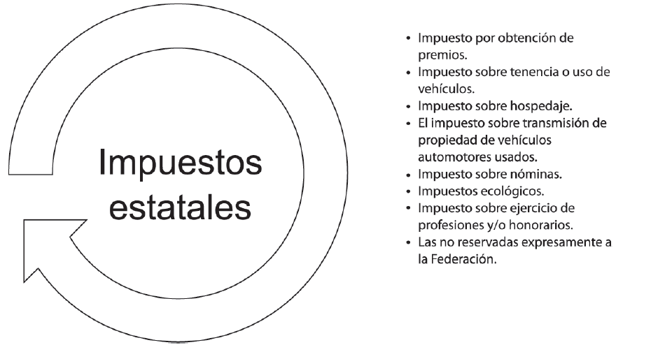 A los estados le corresponden las siguientes materias: imposición sobre la propiedad inmobiliaria, imposición sobre nóminas, imposición sobre productos recaudada en destino, imposición sobre los recursos naturales.