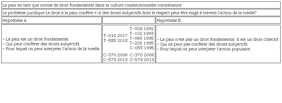 Mots-clés: droit à la paix, droit fondamental, droit collectif, culture constitutionnelle colombienne.