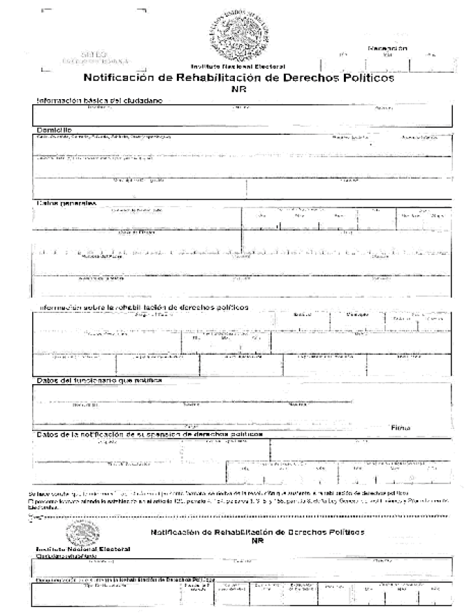 C. Formato. Notificación de rehabilitación de derechos políticos (NR)