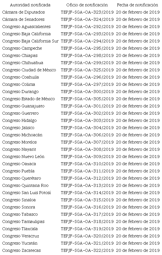 ¿Qué órganos del Estado constitucional democrático mexicano son los involucrados en el cumplimiento de la sentencia? Como hemos podido saber a lo largo de la disertación los entes del Estado obligados en su cumplimiento son: la autoridad administrativa electoral INE, y en el ámbito de su competencia el constituyente permanente Local y Federal. Para efectos de enriquecer la investigación, pongo a la vista los oficios de notificación ocurridos tanto a la Cámara de Senadores, Cámara de Diputados, y Congresos de las treinta y dos entidades federativas, respectivamente. Data, que prueba la obligación erga omnes del formante jurisdiccional en estudio. Además, muestro los instrumentos que se utilizan en los distintos órganos jurisdiccionales -en ejecución de sentencias- para la suspensión de derechos políticos-electorales (NS) y reactivación de derechos políticos-electorales (NR). Instrumentos remitidos periódicamente por el INE mediante un bloc debidamente foliado. Por lo que, sólo puede utilizarse uno por sentenciado. Cada documento tiene espacios en blanco que deben llenarse por el órgano jurisdiccional, con información personal para identificar al ciudadano, y con información procesal para referenciar la causa penal en que se impuso la pena, su duración, y el momento en que empieza a correr el lapso de suspensión. De modo que, una vez asentados los datos, y firmado el formato se envía al INE, para que proceda ejecutar la baja en el padrón y la lista nominal correspondiente. Para esta parte de mi disertación, considero importante saber si Guadalupe Gómez Hernández y Marcos Ruiz López, actores del -JDC-, SUP-JDC-352-2018 y acumulado, tienen suspendidos sus derechos políticos-electorales. Para mayor abundamiento véase en epígrafe Anexos: “D” y “E” los instrumentos que se utilizan para la suspensión y reactivación respectivamente de la prerrogativa en comento.