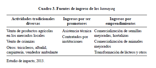 Las fuentes de ingreso de los kamayoq son de tres tipos: