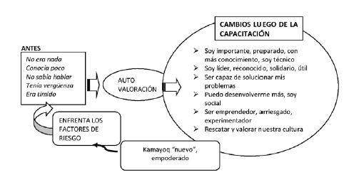 En tal sentido, una adecuada autoestima supuso el reconocimiento de las habilidades, destrezas y conocimientos, pero también de las limitaciones, manteniendo un sentimiento básico de ser valioso. Es eso precisamente lo que les ha insuflado la «Escuela de kamayoq» a partir de una propuesta formativa que combinaba lo tecnológico con lo humanístico. Aquí un esquema de dichos cambios: