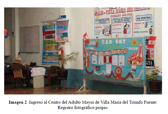 Luego de una vida de lucha por contar con servicios básicos tales como agua, luz, desagüe y escuelas para sus hijos, sus primeros pobladores ahora reclaman servicios para las personas mayores como ellos. Debido a la falta de interés del gobierno por esta población durante las dos décadas pasadas, las personas adultas mayores de esta comunidad decidieron crear distintas organizaciones independientes que buscaban identificar y atender las necesidades de este grupo etario, brindándoles servicios educativos y de ocio. La principal se llama Asociación Club de Jubilados de VMT[11]. En el año 2009, el Seguro Social peruano decidió crear el Centro para Adultos Mayores en el que hice mi investigación, lo cual fue considerado por los miembros de la asociación un triunfo y una respuesta a sus demandas. Esta apertura generó que la mayoría de integrantes de la asociación se trasladaran al CAM, ya que eran pensionistas del Seguro Social, mientras que algunos que no pertenecen a este sistema de pensiones continúan en esta agrupación. Así, comenzaron a existir servicios para esta población que ya no eran manejados por las personas mayores de la comunidad. A pesar de ello, estas personas siguen manteniendo un rol fundamental en la organización y financiamiento del servicio. Actualmente, este CAM tiene seis años y cuenta con aproximadamente 630 inscritos.