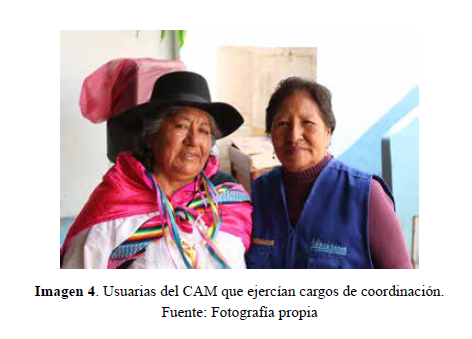 En ese sentido, los implementadores solían comparar el comportamiento de las mujeres y hombres que participaban en el centro y las usuarias eran constantemente puestas como ejemplo debido a que se acercaban más al ideal de vejez que este programa buscaba. Por ello, se considera que la vejez ideal propuesta por el CAM parece asociar los comportamientos y actitudes tradicionalmente asociadas a la femineidad con características saludables y positivas, mientras que las asociadas a la masculinidad tradicional con el vicio y la enfermedad, actitudes que el centro no puede ni debe promover.
