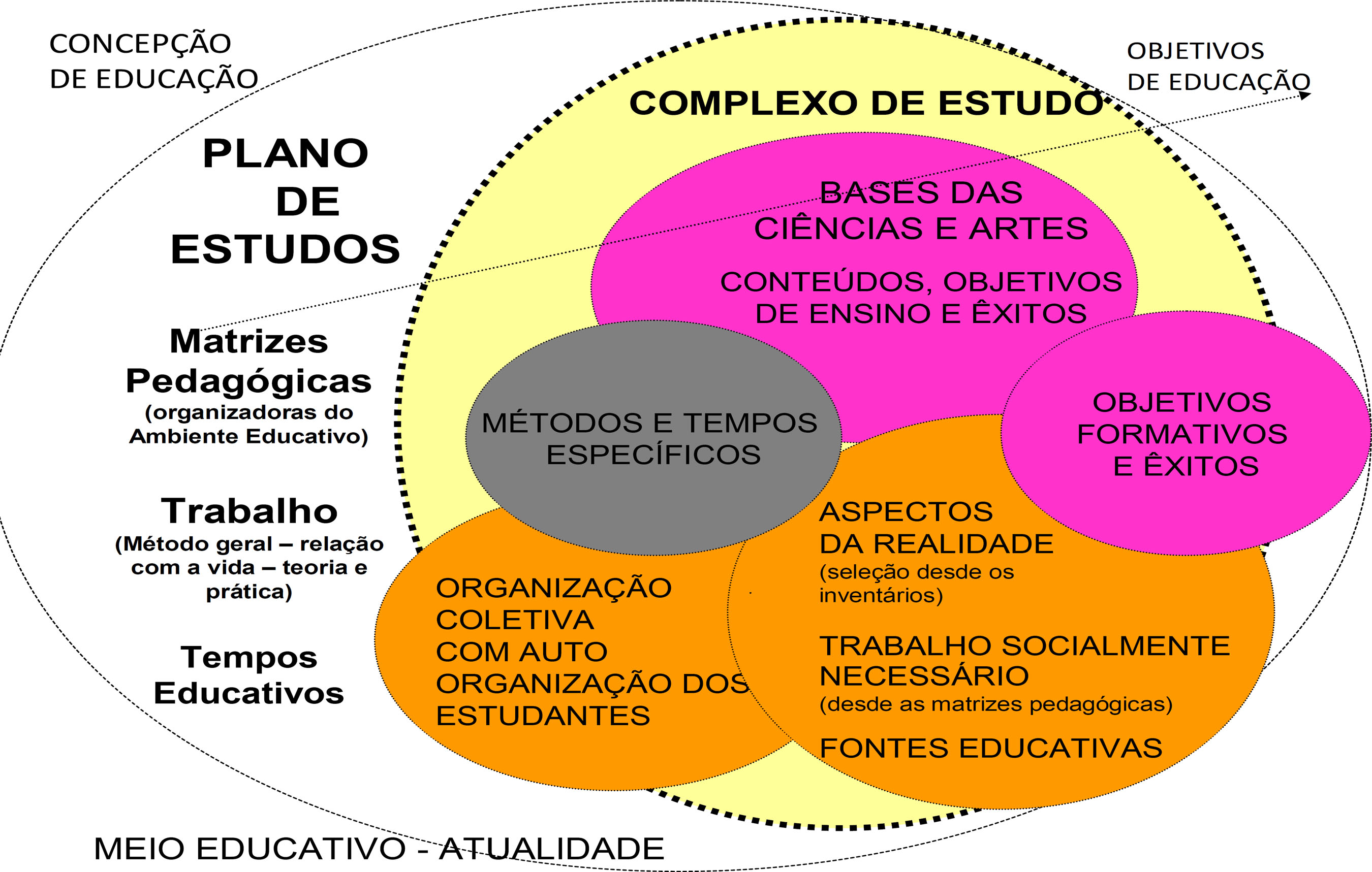 O Plano de Estudos é composto por vários Complexos de Estudo, elaborados a partir de inventários da realidade, do entorno das escolas que estão envolvidas no processo de experimentação. Assim, os conteúdos ensinados fazem mais sentido se atrelados à vida dos educandos, pois a educação não acontece só na escola, mas também fora dela. Por isso, o trabalho escolar deve ter relação com outros aspectos que formam o sujeito, ou seja, com outras matrizes formadoras.