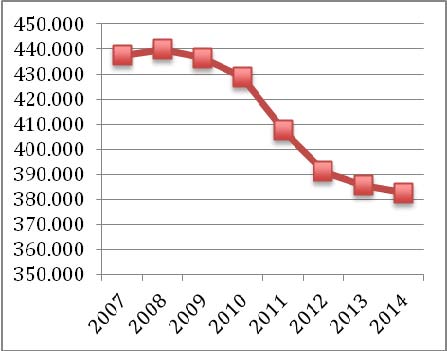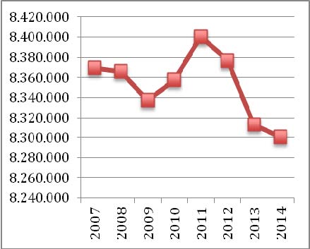 Este artigo é resultado de duas pesquisas1 desenvolvidas em torno dos resultados da política de avaliação desenvolvida pela Rede Estadual de Pernambuco no currículo do Programa de Educação Integral (PEI), implementado nas Escolas de Referência em Ensino Médio (EREMs) e nas Escolas Técnicas Estaduais (ETEs). Esse processo tem como contexto a redução no número de matrículas no Ensino Médio no Brasil (Gráficos 1 e 2) e o revés no número de brasileiros na faixa etária de 15 a 17 anos matriculados nas redes de ensino (em 2008, 84,1% da população nesta faixa etária frequentava as redes de ensino, em 2009, a porcentagem subiu para 85,2%, em 2011, ela caiu para 83,7% e em 2014, caiu mais ainda, para 82,6%)2. Nestes números também são consideradas as matrículas na Educação de Jovens e Adultos e na Educação Profissional. Em Pernambuco essa taxa de atendimento aos jovens entre 15 e 17 anos manteve-se em crescimento até 2013, quando alcançou 82,7%. Mas, em 2014, a taxa de atendimento caiu para 79,3%.