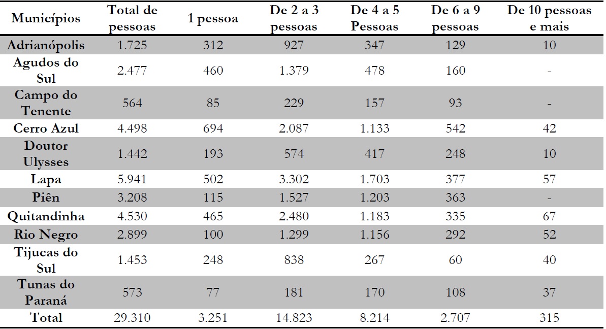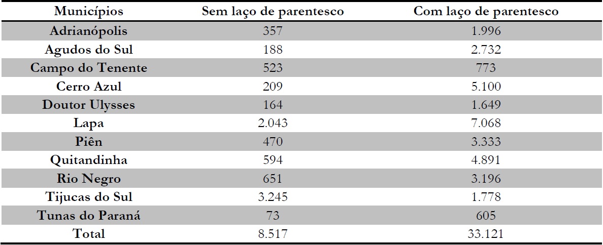 De todo modo, esse dado é relevante, pois, se apenas 2 a 3 parentes estão envolvidos com o trabalho na agricultura familiar, no Terceiro Anel, na RMC, infere-se que os outros familiares, se houver, estão trabalhando em outros estabelecimentos para complementar a renda, tendo em vista que boa parte da agricultura familiar pode estar sendo direcionada ao consumo próprio, conforme aponta Zanchet (2008). Nesse caso, considera-se que não é possível reproduzir as condições de vida somente com a agricultura familiar, implicando a necessidade de outros familiares buscarem outros empregos.