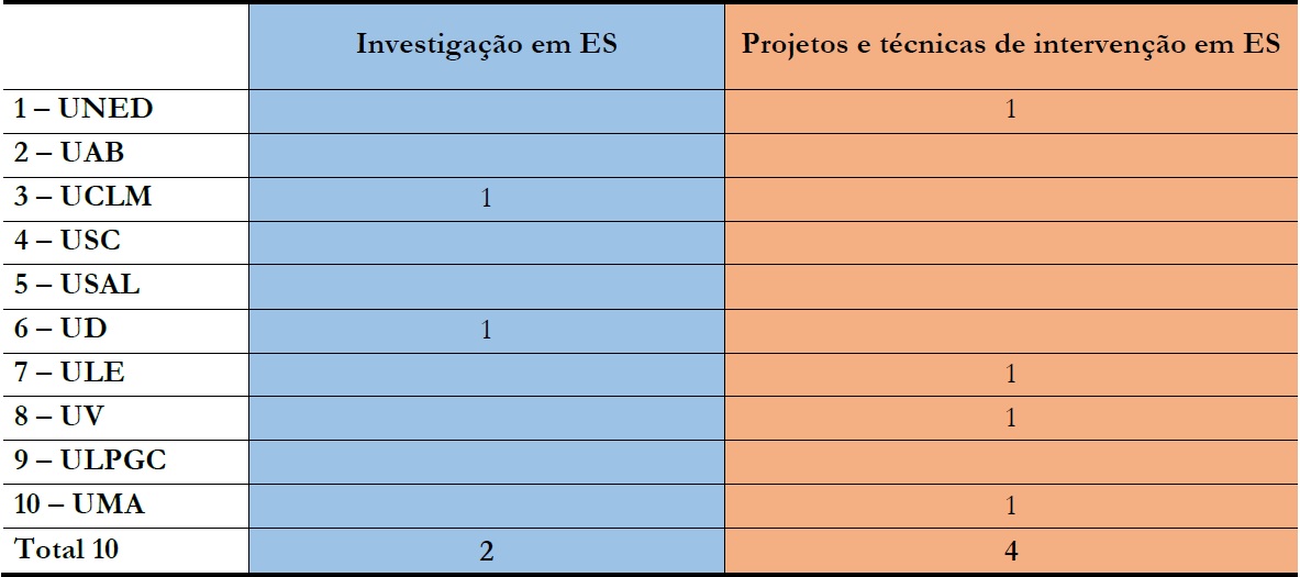 Metodologia: Investigação em ES; Projetos e Técnicas de intervenção em ES.