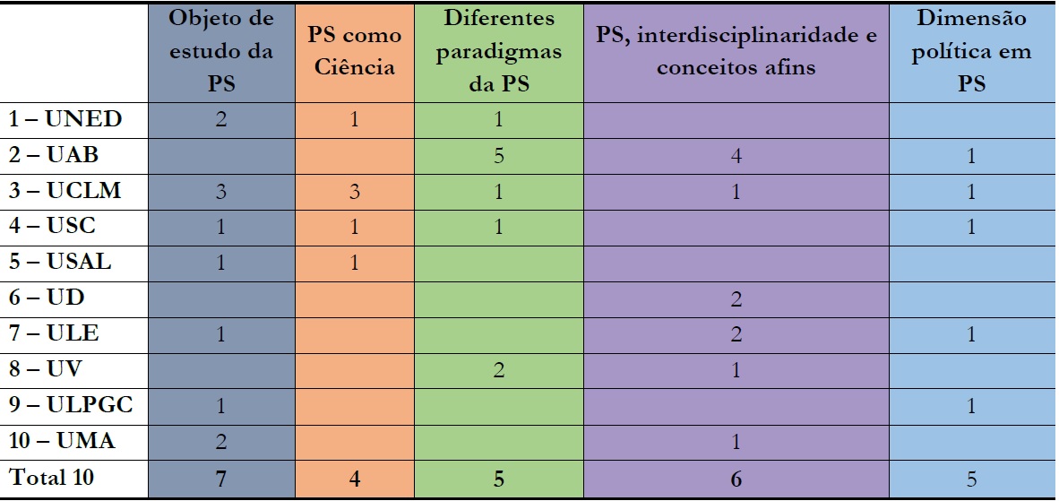 Aspectos conceituais: Objeto de estudo da PS; PS como ciência; Diferentes paradigmas da PS; PS, interdisciplinaridade e conceitos afins; Dimensão política da PS.