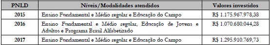 No Quadro 1 a seguir, consideremos os valores investidos pelo MEC, por meio do Fundo Nacional de Desenvolvimento da Educação (FNDE) na aquisição de livros didáticos1 nos últimos anos.