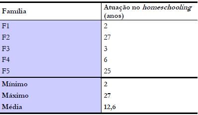 Os anos de experiência evidenciados na Tabela 1 permitem, sob o escopo de vivência familiar com a prática do homeschooling, credenciar essas famílias como relevantes para este estudo, pois, em média, são pessoas que exercitam o homeschooling há vários anos.