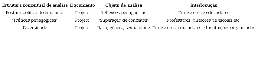Teves (1992) esclarece que, para investigar uma realidade social, é preciso contar com um conjunto coordenado de representações, uma estrutura de sentidos e de significados que circula entre membros de determinados grupos sociais, mediante diferentes formas de linguagem, alicerçando e construindo ações. Contudo, parece-nos que a estratégia de enfrentamento desses embates não se restringe apenas as do plano pedagógico, de saberes docentes e dos conjuntos de conteúdos e de disciplinas oferecidos. As condições reais de intervenção amparam-se em atitudes unilaterais, não levando em conta a práxis pedagógica nem o sentido político-pedagógico de confrontação do objeto posto em pauta de discussão (diversidade).