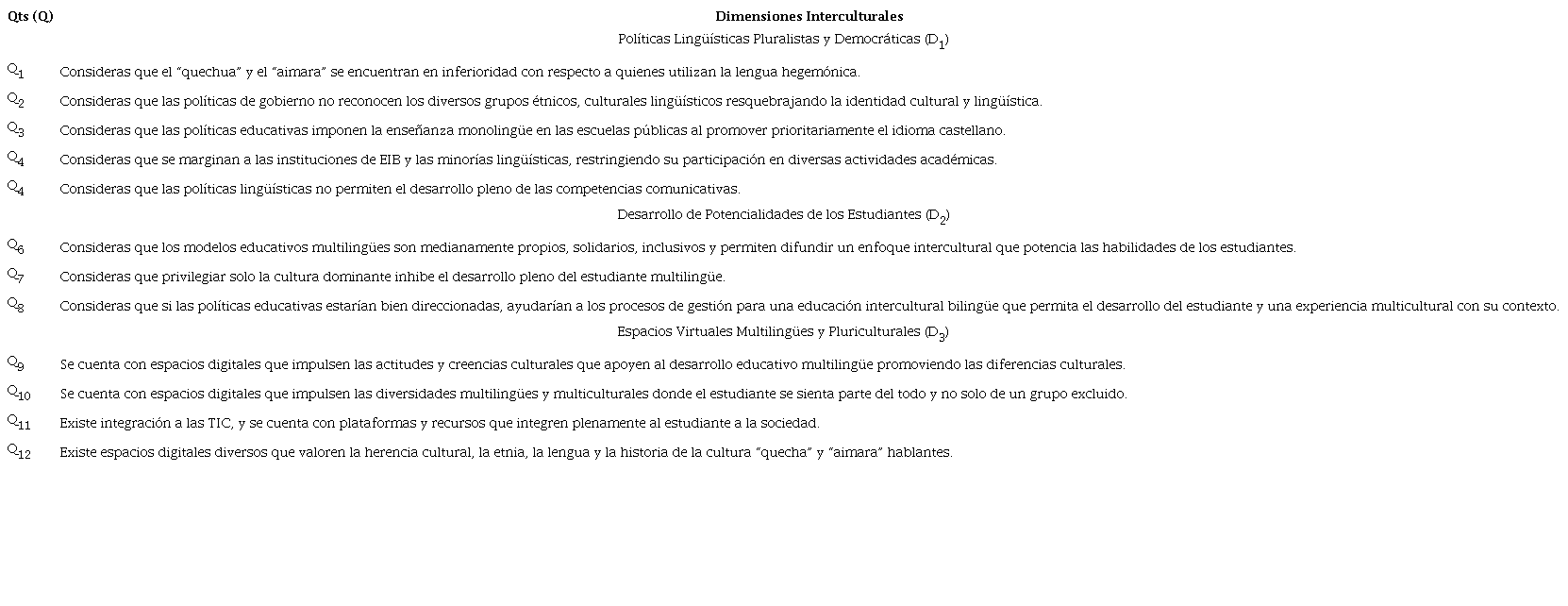 Por otro lado, para la dimensión Políticas Lingüísticas Pluralista y Democráticas (D1) manifiestan que existe una mayor valoración negativa entre los encuestados, quienes consideran que las políticas lingüísticas permiten el desarrollo pleno de las competencias comunicativas, pero consideran que los idiomas “quechua” y “aimara” en zonas rurales del altiplano peruano se encuentran en inferioridad de condiciones con respecto a quienes utilizan la lengua hegemónica.