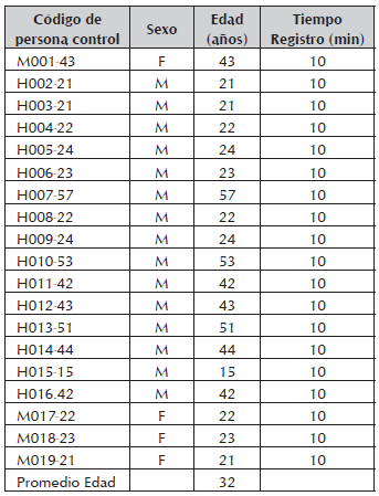 La población experimental, fueron el total de pacientes diagnosticados por EC, registrados en la base de datos de la Secretaría Departamental de Salud del Meta. De ésta base de datos se seleccionaron aleatoriamente 50 pacientes, los cuales fueron contactados personalmente, con el fin de explicarles los objetivos del proyecto y poder recolectar los datos electrocardiográficos. Los pacientes contactados residían en diferentes municipios del departamento del Meta, razón por la cual solo se incluyeron aquellos pacientes que habitaban en el área urbana y rural de la ciudad de Villavicencio, 19 en total. Los individuos control fueron 19, quienes manifestaron no padecer ninguna enfermedad en el momento de realizar los registros electrocardiográficos. Los pacientes seropositivos tienen mayor edad, dado que la fase crónica de la enfermedad, cuando afecta el corazón, se desarrolla y diagnostica años después de la infección del paciente, cuando este asiste a la consulta por cardiopatía, no por enfermedad de Chagas.